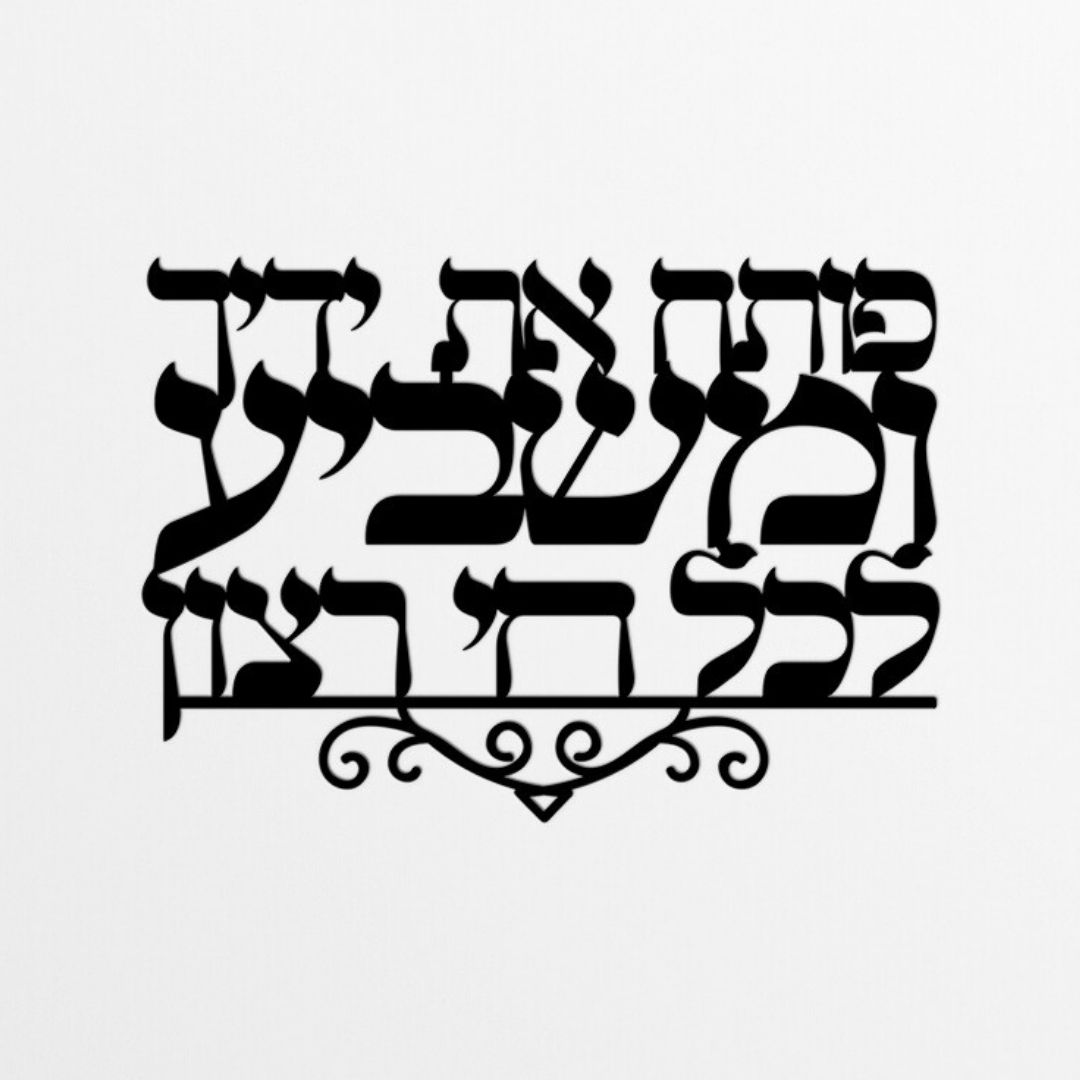 שלט מתכת "פותח את ידיך ומשביע לכל חי רצון" בעיצוב קלאסי ונקי שמתאים לכל בית..